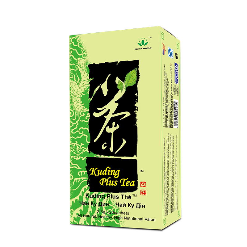 According to TCM, Green World Kuding Plus Tea can expel the evil “heat” from the body, which means reducing inflammation. It is an ideal herbal tea for preventing and alleviating cold and flu. Being a detoxifier, Green World Kuding Plus Tea can relieve pain, especially headache and sore throat. It protects cardio and cerebral blood vessels through lowering blood pressure and blood lipid levels.
